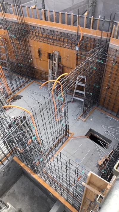 ほとんどの鉄筋コンクリート造では、まず骨格部分となる型枠に鉄骨や鉄筋を加工して、コンクリートを流し込んで造ります。